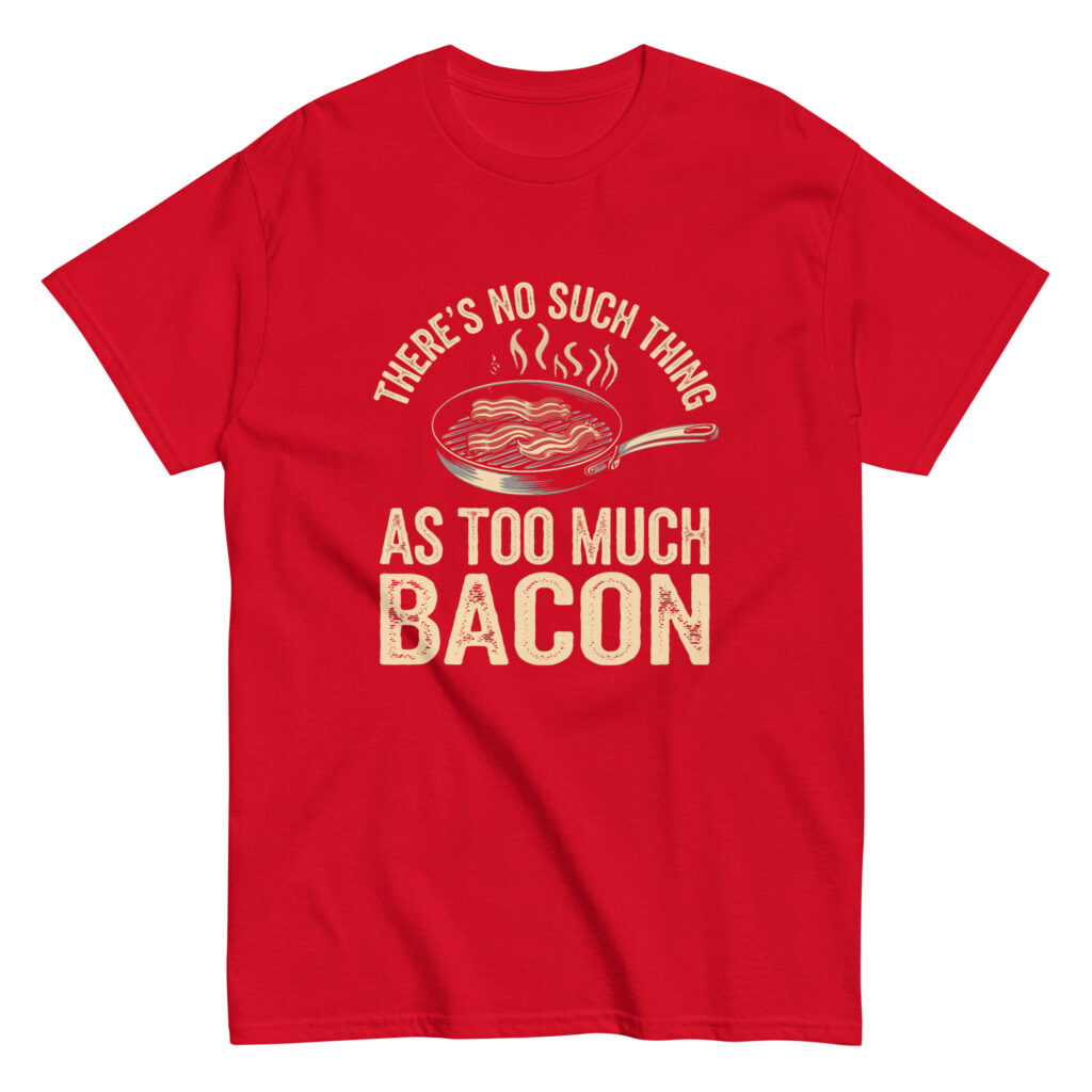 Celebrate the king of meats with our “There’s No Such Thing as Too Much Bacon” T-shirt. Made for those who believe a side of bacon is just a starting point, this premium tee is perfect for backyard BBQs, Sunday brunch, or gifting to the bacon enthusiast in your life. Comfortable, witty, and 100% accurate.